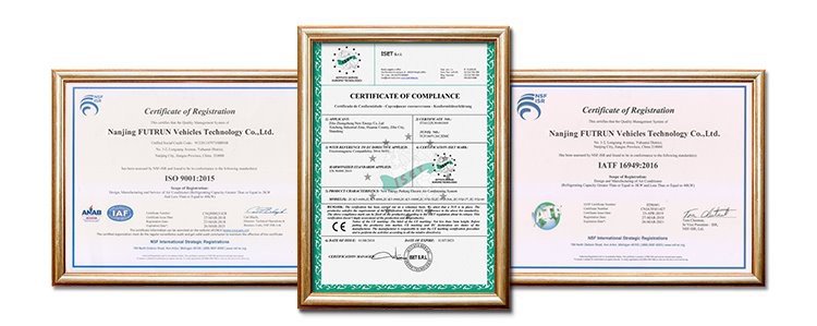 Nosi kamionske hladnjače R780, koristimo Japan Sanden ili Unicla kompresor; Alco ili Danfoss ekspanzijski ventil, Danfoss isušivač prijemnika, talijanski Olab solenoidni ventil, američka Goodyear tlačna crijeva, turbo puhalo isparivača bez četkica, pouzdani digitalni upravljač, bakrena cijev & pera od aluminijske folije i cijev za izmjenu topline.